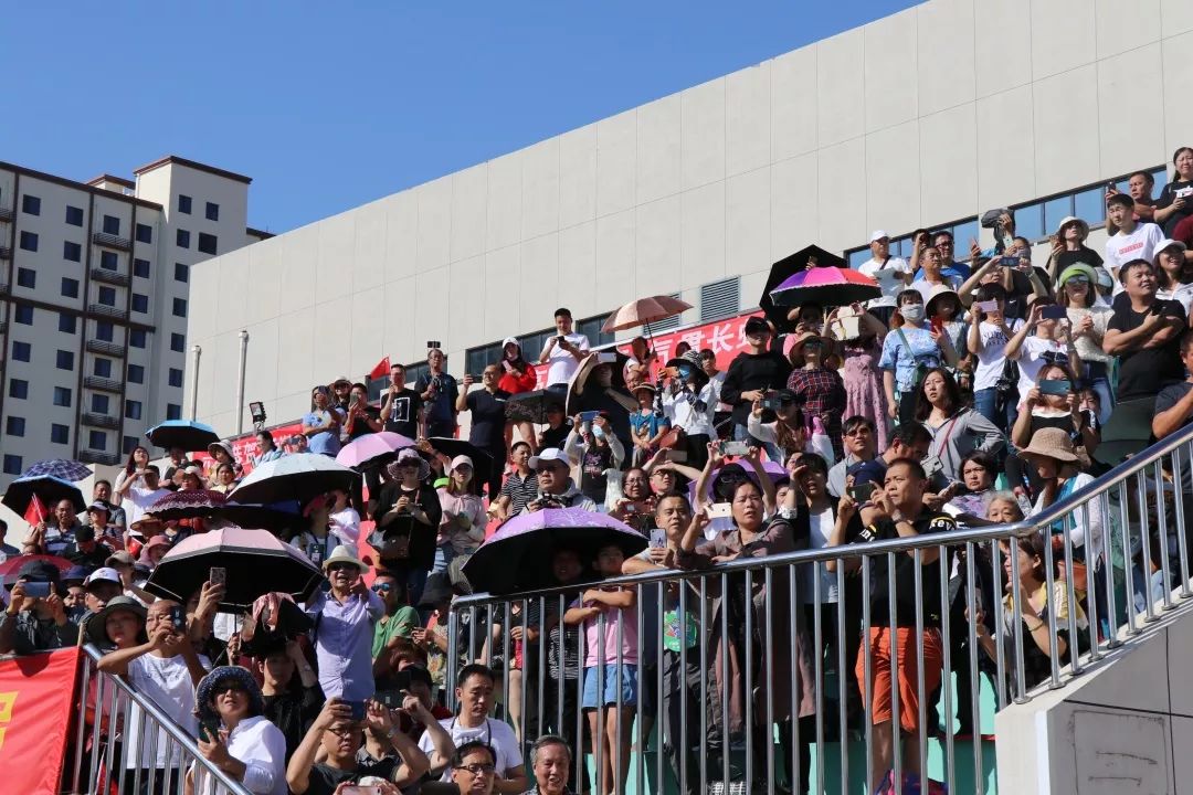 家長(zhǎng)在看臺(tái)拍攝學(xué)生表演