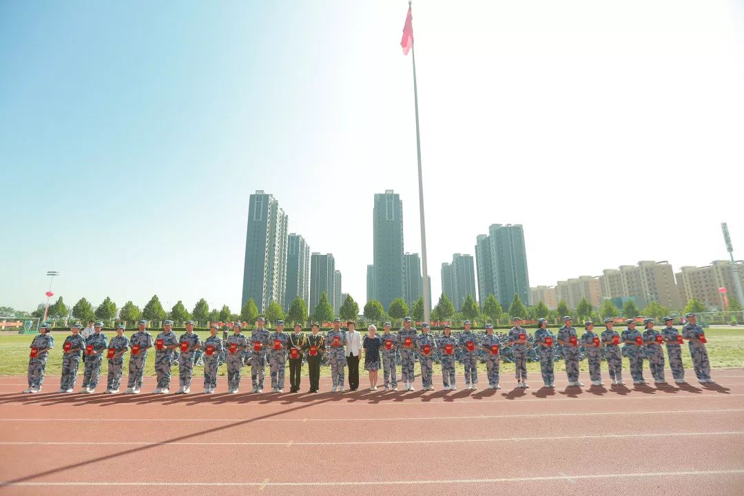 楊校長(zhǎng)向軍訓(xùn)單位授予錦旗