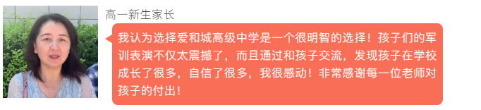 最后發(fā)言的是學(xué)生家長(zhǎng)代表王旭函媽媽,她說(shuō)道:“通過(guò)這次軍訓(xùn)匯演,我看到了學(xué)生的成長(zhǎng)、教師的盡責(zé),我堅(jiān)信選擇愛和城高中是最正確的選擇。這里不僅有一流的學(xué)習(xí)生活環(huán)境、以人為本的精細(xì)管理、來(lái)自名校的雄厚師資,更重要的是我對(duì)愛和城高級(jí)中學(xué)的這份認(rèn)可與信任!希望每一名學(xué)生積極做好迎接高中生活挑戰(zhàn)的準(zhǔn)備,樹立明確的目標(biāo),培養(yǎng)惜時(shí)的精神,不負(fù)父母的期盼,不負(fù)恩師的厚望!”