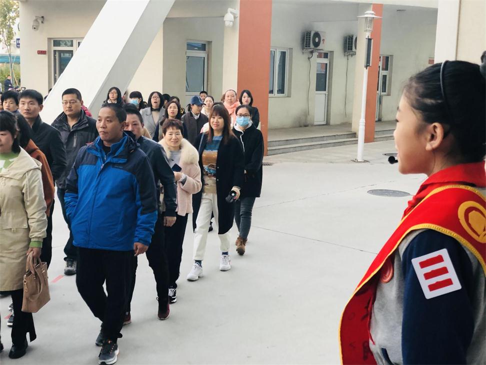 開放課堂結(jié)束后,家長們到操場觀看大課間活動。莊嚴的升旗儀式,身姿挺拔的男武女武,井然有序的菱形退場,都給家長們留下了深刻的印象。