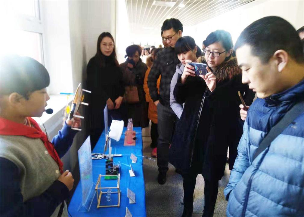 大課間后,家長們參觀科技節(jié)成果展。本次布展共展出電子報和手抄報100余份、樹葉畫100余份、科技小制作30個、科幻畫 60幅、陶藝作品20件,都是學(xué)生們的創(chuàng)意展現(xiàn)。