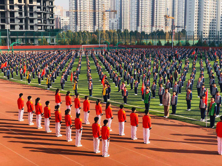 初中部的開放日安排在了下午,中午陽光正好,家長們首先來到操場觀看跑操,跑操中的每一名學(xué)生都精神抖擻,他們以整齊的步伐、響亮的口號,展示了自己的活力、彰顯了班級的風(fēng)采。