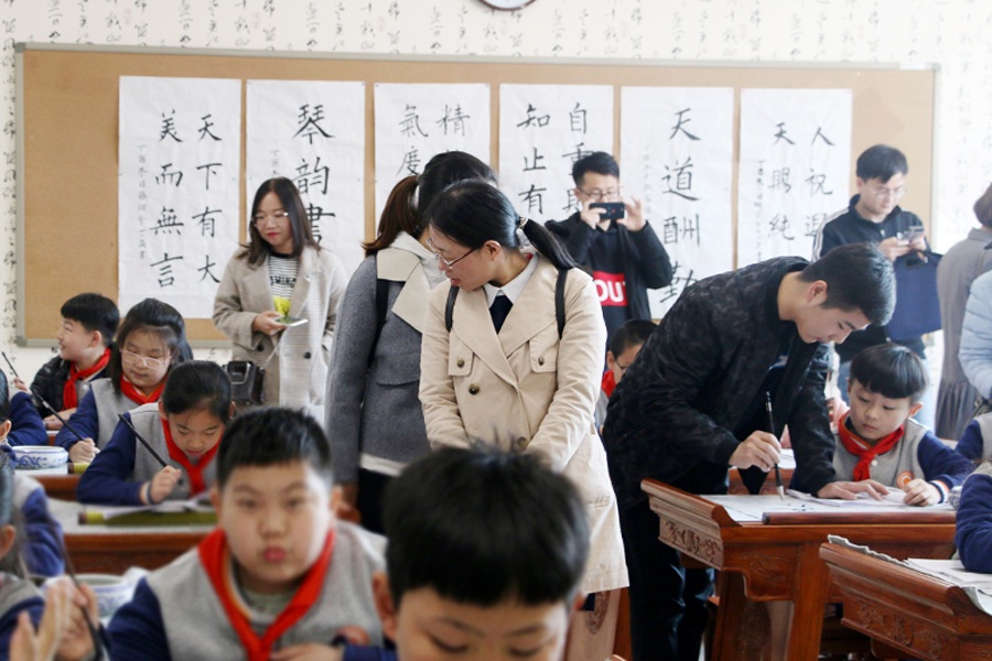 活動(dòng)結(jié)束后,教師們?cè)诒拘=處煹囊I(lǐng)下參觀長(zhǎng)城學(xué)校初中部的課間跑操和藝體教室等,對(duì)溫馨開(kāi)闊的教學(xué)環(huán)境和先進(jìn)的環(huán)境設(shè)施表示贊許。