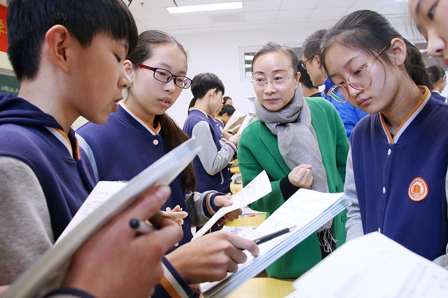 過(guò)后,石老師進(jìn)行概評(píng)、檢改(教師提問(wèn)、學(xué)生回答),幫助學(xué)生們系統(tǒng)性梳理知識(shí)點(diǎn)。整堂課,學(xué)生們有討論、有回答也有質(zhì)疑,思維敏捷靈活,占據(jù)課堂的主體位置。聽(tīng)課過(guò)程中,教師們時(shí)不時(shí)記下課堂亮點(diǎn)。