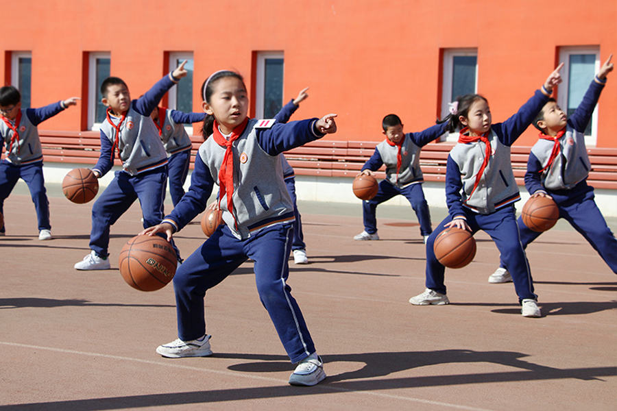 儀式上,學(xué)生們帶來《橫欄縱舞》籃球展示。16名學(xué)生挑戰(zhàn)地心引力,引爆籃球魅力,運球傳球一氣呵成,表演動作轉(zhuǎn)換快、配合度高,充分展現(xiàn)了集體運動的團(tuán)結(jié)性。節(jié)目傳達(dá)出籃球運動的熱情與活力,感染著在場的每位師生。