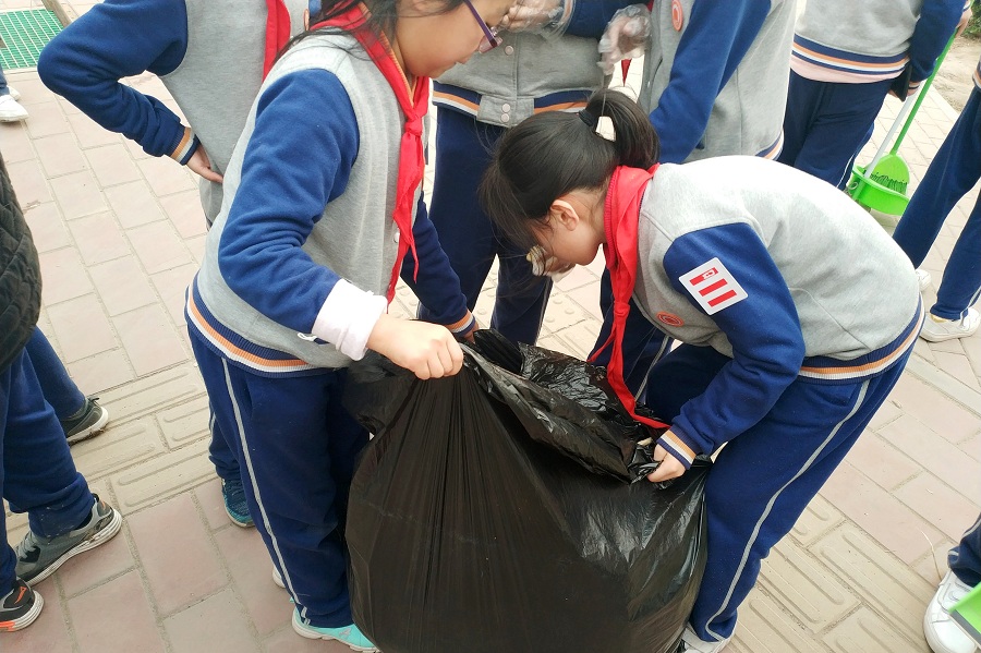 “我為校園做貢獻(xiàn)”在校內(nèi)外撿垃圾、美化環(huán)境